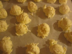Shape softened cream cheese into “small” balls and roll them in coconut flakes. Serve chilled.